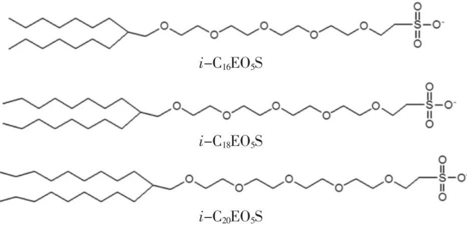聚氧乙烯醚磺酸鹽類表面活性劑是一類具有優(yōu)良性能的陰離子-非離子型表面活性劑,受到了研究者的關(guān)注。但此類表面活性劑結(jié)構(gòu)與降低界面張力性能之間的關(guān)系尚有待深入研究,尤其對(duì)于親油基含有支鏈烷烴結(jié)構(gòu)的聚氧乙烯醚磺酸鹽的研究成果較少.直鏈陰離子-非離子表面活性劑自身降低界面張力的能力有待提高,而支鏈化則是提高降低界面張力能力的有效手段。