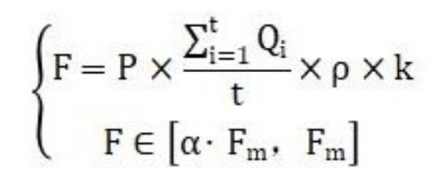 其中,F為高壓水流沖洗設備實際水流沖洗的沖擊力,Qi為高壓水流沖洗設備第i秒水流的流量,t為高壓水流沖洗設備預設的水流沖洗的時長,ρ為水的密度,k為預設定的閾值參數,P為輸出功率可調的高壓水流沖洗設備的實際輸出功率,α為預設的抗壓閾值參數且其數值小于1,Fm為新能源電池沖壓配件最大抗沖擊力值。