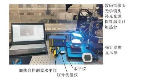 實驗設備:數碼攝像機,大恒MER-132-30GC,幀率為30幀/s;光學鏡頭,DH110-04F28X,放大倍數,4X;圖像采集軟件,Daheng Galaxy Viewer;加熱臺;移相觸發溫控臺,溫度范圍20~450℃;干燥箱,蘇泊儀器有限公司電熱恒溫干燥箱,溫度10~300℃;紅外測溫儀,得力DL333600,-40~600℃;探針式溫度計,邦弗JR-9919工業溫度計;光學平臺,卓立漢光SRP10-08。上述設備按圖1放置、安裝。