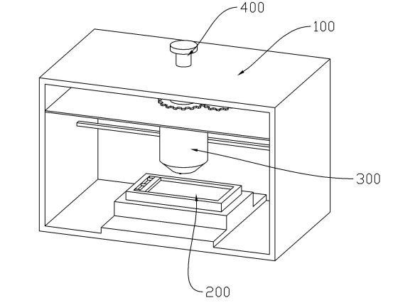 一種醫(yī)學(xué)檢測用涂片裝置,包括外殼100、涂片臺200和滴液機(jī)構(gòu)300。滴液機(jī)構(gòu)300包括滴液筒310、副筒320和外筒330。滴液筒310能夠繞第一方向轉(zhuǎn)動地安裝于外殼100上,第一方向?yàn)樨Q直方向。滴液筒310內(nèi)裝有待檢測液。副筒320與滴液筒310同軸設(shè)置并套接于滴液筒310內(nèi),外筒330與滴液筒310同軸設(shè)置并套接于滴液筒310外,將沿第二方向靠近滴液筒310中心軸線的一側(cè)稱為內(nèi),沿第二方向遠(yuǎn)離滴液筒310中心軸線的一側(cè)稱為外,第二方向與第一方向垂直,第二方向?yàn)樗椒较颉?