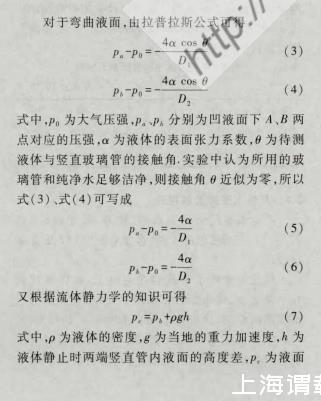 根據式(8),只需測量兩豎直管的直徑D1、D2以及管中凹液面的高低差h,便可以計算出待測液體的表面張力系數。