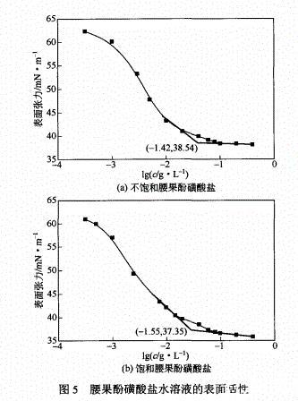 側鏈烷基的飽和度對腰果酚磺酸鹽水溶液的表面活性、界面活性的影響