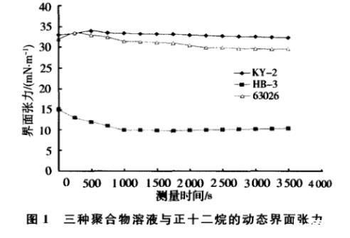 圖1三種聚合物溶液與正十二烷的動態界面張力