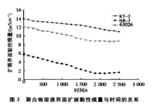 圖3聚合物溶液界面擴展黏性模量與時間的關系