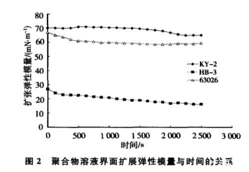圖2聚合物溶液界面擴展彈性模量與時間的關系