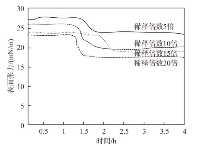圖4不同稀釋倍數下表面張力測試結果對比