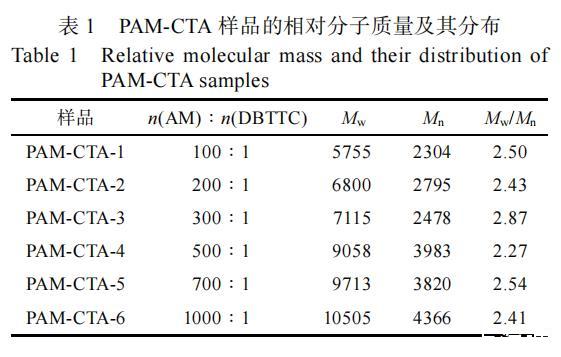 表1 PAM-CTA樣品的相對分子質(zhì)量及其分布