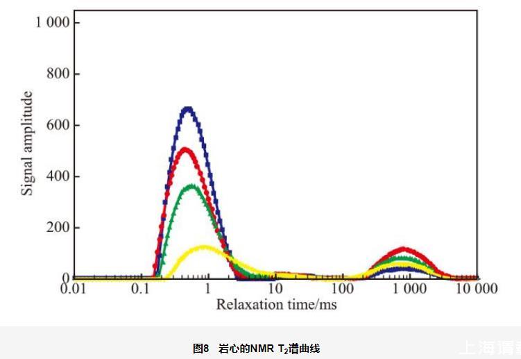 5)經(jīng)復(fù)合表面活性劑體系處理后,巖心含水飽和度由77.4%降至8.10%,巖心含油飽和度由66.7%降至11.25%;巖心中多孔介質(zhì)經(jīng)復(fù)合體系處理后,氣相滲透率由水侵污染后的23.09×103μm2恢復(fù)到53.59×103μm2,由油侵污染后的26.06×103μm2恢復(fù)到52.21×103μm2,由液侵污染后的30.20×103μm2恢復(fù)到54.98×103μm2。通過巖心自發(fā)滲吸實驗、NMR實驗以及巖心流動實驗得出復(fù)合體系能夠有效預(yù)防巖心液侵和有效解除巖心液侵傷害。