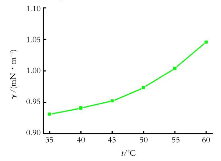 圖3溫度對(duì)油-水界面張力的影響