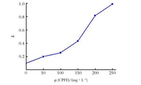 圖4 CPFE質(zhì)量濃度對(duì)油滴破裂速率常數(shù)的影響