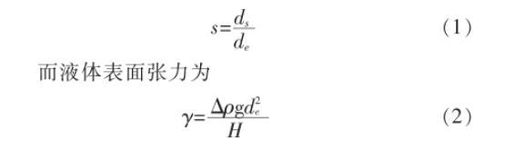 式(2)中為液體和空氣之間的密度差,g為重力加速度,而根據經驗公式和推導證明,認為S和1/H是反應液滴形狀的參數,可查表得到兩者的固定關系,根據此關系將S代入表面張力計算,可以得到液體表面張力。
