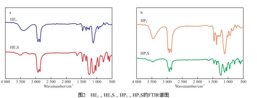 可見(jiàn),產(chǎn)物的1H NMR譜圖分析結(jié)果與HE3S和HP3S的理論分子式結(jié)構(gòu)相吻合,表明成功得到了目標(biāo)產(chǎn)物。