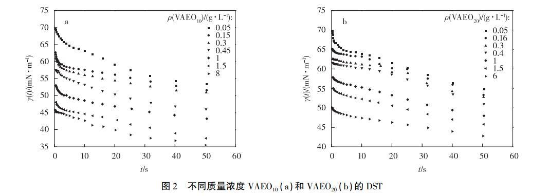 2.2不同質(zhì)量濃度VAEO的動態(tài)表面張力
