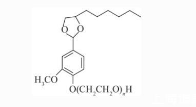 香蘭素基聚氧乙烯醚left(VAEO_n,n=10right.、20,由香蘭素與辛二醇在磷酸催化下生成香蘭素辛二醇縮醛,再與環(huán)氧乙烷開環(huán)加成聚合反應(yīng)得到,純度95%),其EO聚合度呈泊松分布。