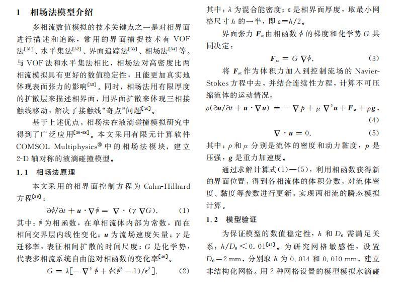 基于上述優點,相場法在液滴碰撞模擬研究中得到了廣泛應用。本文采用有限元計算軟件COMSOL Multiphysics