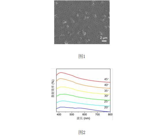 針對現有技術的不足,本發明的第一個目的是提供一種具有結構色的材料,該材料由透明的基底和均勻覆蓋在基底表面的單層的納米環陣列組成。在納米環陣列中,納米環以“平躺”的方式緊密排列,每平方毫米納米環的個數為800-2000個。該結構色材料在透射條件下能夠呈現出隨著觀察角度變化的結構色。