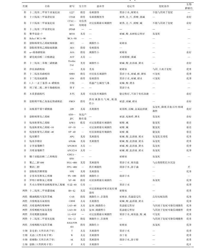 常見表面活性劑分類、性質、水溶液潤濕性、與表面張力間的關系