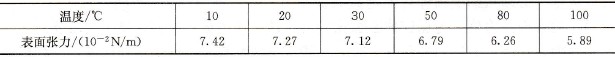 式中,Tc為液體物質的臨界溫度,n為經驗常數,有機液體n的平均值為1.21。當溫度為Te時,表面張力趨于零。表1-2為水在不同溫度下的表面張力。