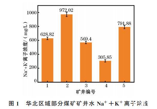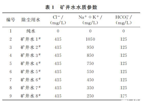 根據(jù)調(diào)研結(jié)果配制9組溶液,包括8組Na+、K+離子濃度不同的礦井水和1組純水,溶液配比見表1。配制溶液時,取適量去離子水,向其中投加CaCl2、MgCl2、Ca(HCO3)2 控制礦井水硬度,向其中投加NaCl、HCl和NaOH控制礦井水的pH為7.5,向水溶液添加其他必需微量離子和雜質(zhì),靜置2 h待用。