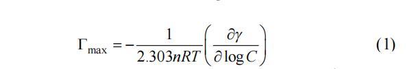 空氣/水界面吸附的有效測量方法是通過表面過剩量,Γmax(mol?m-2),通過吉布斯吸附方程計算[27]:
