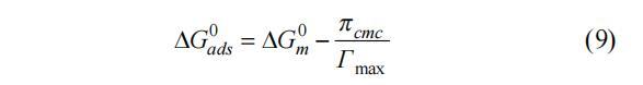 使用公式(8)[32]計算在cmc下獲得的最大吸附摩爾自由能Gmin: