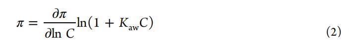 式中,π對應于表面壓力,C對應于化合物濃度。(ii)CMC:對應于最大表面壓力下平臺截距和曲線外推斜率的臨界膠束濃度(?π/?lnc)處于拐點(圖3)。(iii)ΔΔGam:式3中的兩親性