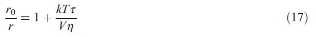 其中r0是在沒有旋轉自由度的情況下獲得的發射各向異性的極限值,k是波爾茲曼常數,T是溫度,τ是熒光團激發態的平均壽命,V是探針的有效分子體積,h是探針周圍的粘度。從等式17可以看出,r值越高,剛性越高,反之亦然。