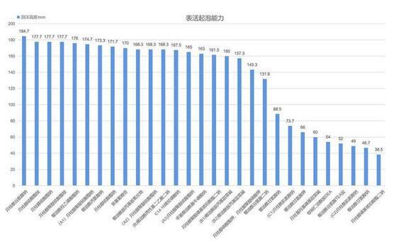 通過對比和排序,我們很快就能篩選出起泡能力好的表活劑,同時也能得到表活劑的起泡規律:(ps:由于相同原料出于不同廠商,其泡沫性能也存在差異,此處用不同大寫字母代表不同的原料廠商)