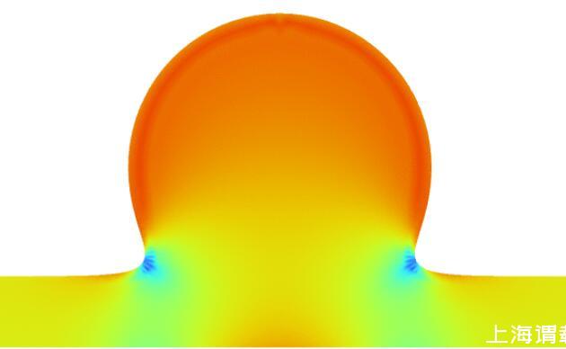 這里科技千里眼奉送一個自己做的仿真計算——液滴在表面張力作用下的變形,我們看到,藍色部分為負曲率,因此壓強為負,而紅色部分為正曲率,因此壓強為正,液體會從正壓強流向負壓強,這也是表面張力影響下流體變形的基本原理。