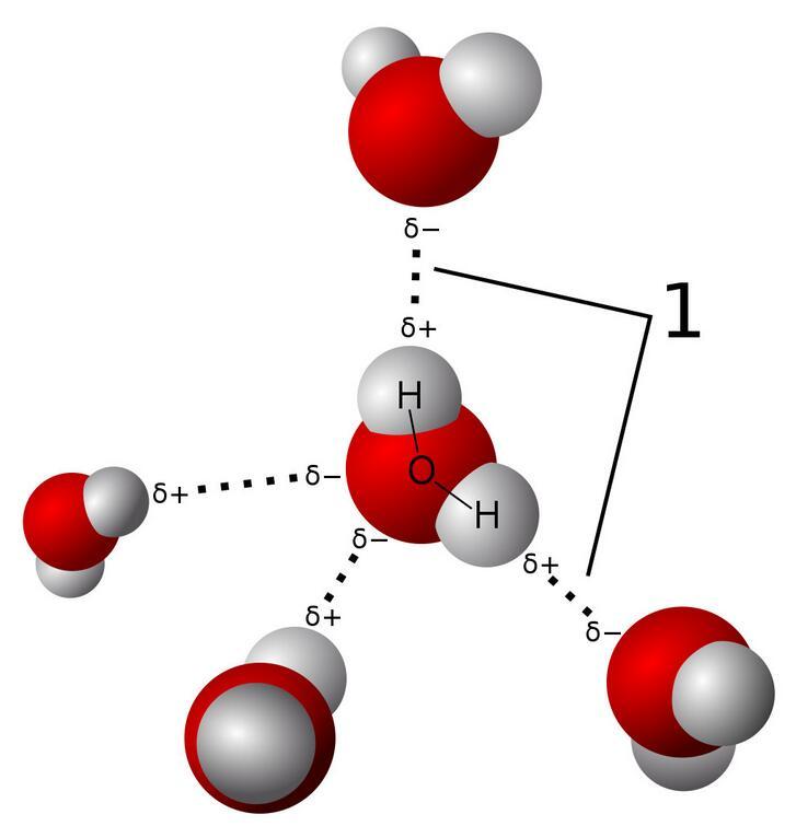 水由氫和氧原子組成。當氫(H)原子與氧(O)、氮(N)或氟(F)結合時,氫唯一的一個電子會與它們形成共價鍵,這時候氫原子的電子由于被O、N或F吸引而稍稍“跑偏”,導致氫原子這一端呈現(xiàn)更多的正電性(氫原子核帶正電);與之相對應地,分子的另一端會因為吸引電子的能力更強而顯示出負電。分子對外顯示出比較強的電極性,分子與分子之間會因為電極性的不同而相互吸引。