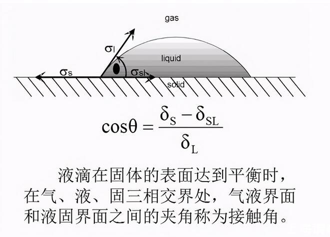 鋪展過程:表示在固液界面取代了氣固界面的同時,氣液界面也擴大了同樣的面積。