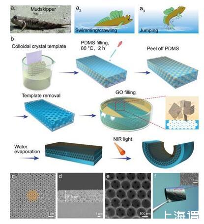 彈涂魚(yú)具有陸地爬行、水中游泳、泥中跳躍的獨(dú)特特征,是一種具有多場(chǎng)景適應(yīng)能力和多功能驅(qū)動(dòng)行為的魚(yú)類。受彈涂魚(yú)啟發(fā),中國(guó)科學(xué)院蘭州化學(xué)物理研究所固體潤(rùn)滑國(guó)家重點(diǎn)實(shí)驗(yàn)室表面與界面研究團(tuán)隊(duì)開(kāi)發(fā)了一種能對(duì)各種環(huán)境做出響應(yīng)的智能光驅(qū)動(dòng)器。