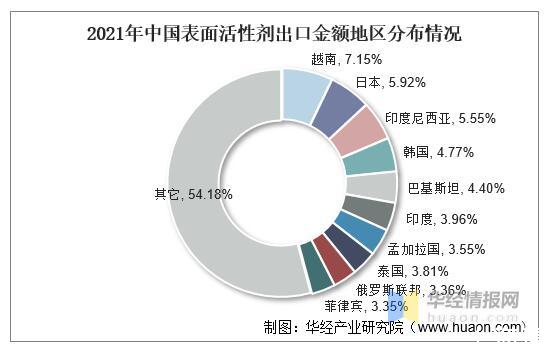 2021年中國表面活性劑出口金額地區分布情況