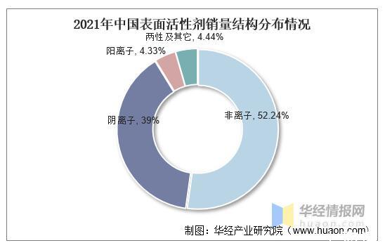 2021年中國表面活性劑銷量結構分布情況