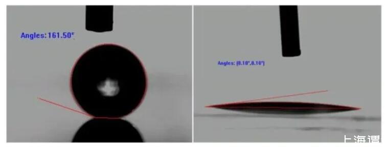 反之,對于疏水表面,固液界面處的表面張力可能非常大,以至于接觸角只有達到鈍角甚至趨近于180°才能達到平衡,此時的現(xiàn)象稱為非浸潤或者不能浸潤。而這種表面由于較高的疏水性被稱為超疏水表面。