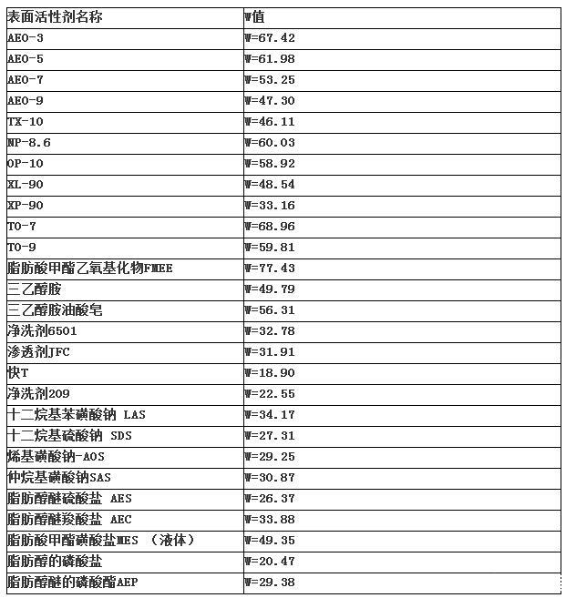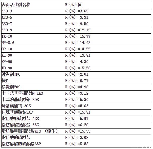 表面活性劑凈洗性能一覽表