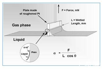 威廉米平板法威廉米平板法(Wilhelmy Plate method):這是一種很普遍的測(cè)量方法,尤其適用于長(zhǎng)時(shí)間測(cè)量表面張力的測(cè)量。測(cè)量的量是一塊垂直于液面的平板在浸濕過(guò)程中所受的力。