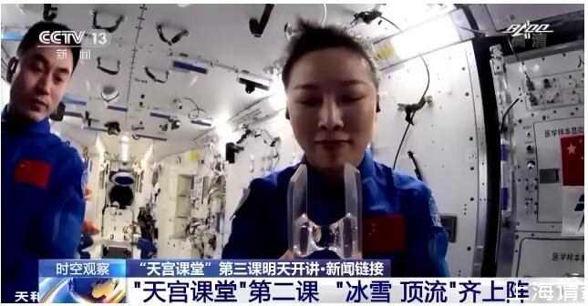 在約45分鐘的授課中,航天員演示了微重力環(huán)境下太空“冰雪”實(shí)驗(yàn)、液橋演示實(shí)驗(yàn)、水油分離實(shí)驗(yàn)、太空拋物實(shí)驗(yàn),講解了實(shí)驗(yàn)現(xiàn)象背后的科學(xué)原理,還展示了部分空間科學(xué)設(shè)施。