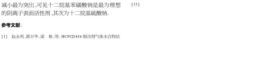 【摘要】:表面活性劑能夠減小液體的表面張力以及兩相液體間的界面張力,界面張力的減小有利于促進氣體水合物快速形成和提高水合物儲氣能力.為定量研究兩相液體間界面張力對氣體水合物形成的影響,用界面張力儀實測不同溫度時蒸餾水、HCFC-141b的表面張力以及HCFC-141b/蒸餾水、HCFC-141b/十二烷基硫酸鈉溶液(0.247%)、HCFC-141b/十二烷基磺酸鈉溶液(0.245%)、HCFC-141b/十二烷基苯磺酸鈉溶液(0.057 6%)的界面張力,測試結果表明,表面活性劑對降低兩相液體間界面張力的作用十分明顯,其中十二烷基苯磺酸鈉溶液對降低界面張力最為突出,降到HCFC-141b/蒸餾水界面張力值的9%左右,為定量研究氣體水合物等優選表面活性劑提供了科學的依據。