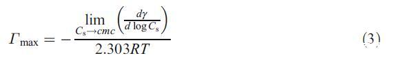 NP 溶液在不同 hp-β-CD 濃度下的界面張力(γ)如圖 1 所示。在任何 hp-β-CD 濃度下,界面張力隨著 NP 的增加而降低。 Hp-β-CD 由七個(gè)葡萄糖單元組成,形成一個(gè)具有親水外表面和疏水內(nèi)腔的環(huán),眾所周知,它主要以 1:1 的化學(xué)計(jì)量將客體分子結(jié)合到疏水腔中 [11]。 在 hp-β-CD 的水溶液中,NP 被認(rèn)為結(jié)合了 hp-β-CD 的疏水腔。 眾所周知,Hp-β-CD 由于其親水性外表面而不吸附在空氣-溶液界面。 這表明未摻入 hp-β-CD 腔的 NP 分子吸附在空氣 - 溶液界面。 在任何 hp-β-CD 濃度下均未觀察到表明膠束化開(kāi)始的斷點(diǎn)(即臨界膠束濃度 (cmc))。 由于 NP 非常疏水,體相中的 NP 單體濃度不能增加到 cmc。 根據(jù) γ 與 log CS,非離子 NP 的最大表面過(guò)量 (Γmax) 通過(guò) Gibb 吸附方程估計(jì)如下 [12]: