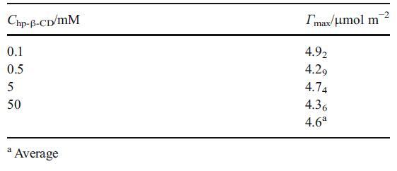 表1 不同hp-β-CD濃度下NP的表面過(guò)量(Γmax)值