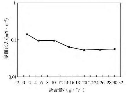 b.黏濃曲線體現(xiàn)出VES J良好的增黏特性,且在質(zhì)量分數(shù)為0.02%時可使與W斷塊原油間油水界面張力降至10-2數(shù)量級;一定質(zhì)量分數(shù)的無機鹽對黏彈性表面活性劑VES J的黏度特性產(chǎn)生積極影響,且體系可在礦化度30g/L時達到10-2數(shù)量級的界面張力,體現(xiàn)了復配體系良好的耐鹽特性;90℃較25℃黏度保留率達到74.6%,W地層溫度(65℃)有利于發(fā)揮體系降低油水界面張力能力。