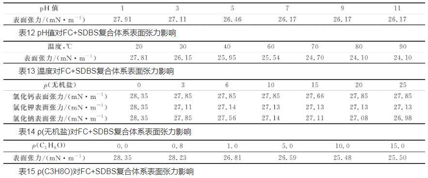 不同環(huán)境因素對(duì)復(fù)配體系的表面張力影響